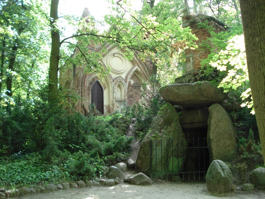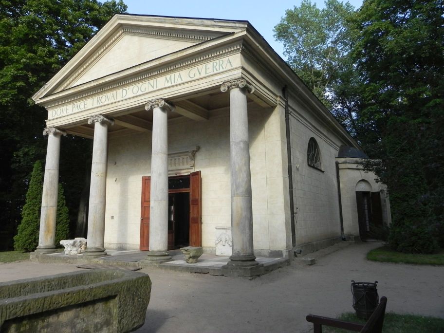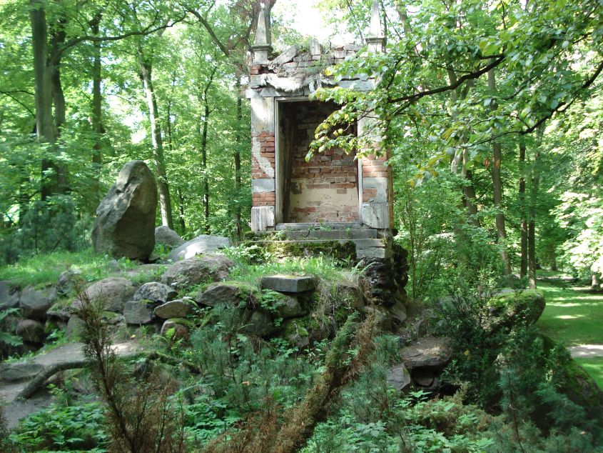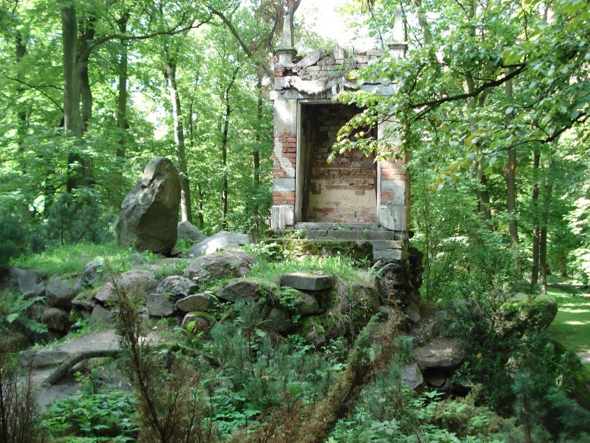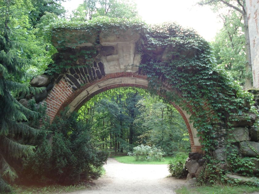 W Arkadii mieści się ogród romantyczny w stylu angielskim założony przez Helenę Przeździecką (1753 – 1821), żonę Michała Hieronima Radziwiłła, właściciela pobliskiego Nieborowa. Do zakładania ogrodu księżna przystąpiła w 1778 roku, kontynuowała swój pomysł do śmierci.